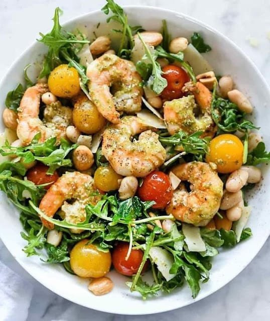 2.Heat a non-stick skillet over medium-high heat. Drizzle the pan with 1 tablespoon of the olive oil and add the shrimp one at a time, careful not to overcrowd the pan, cooking in two batches. Cook for 2 minutes on one side, then flip the shrimp and cook just until opaque, then transfer to a bowl. Reduce the heat slightly and add the rest of the shrimp and all of the oil and garlic from the bowl along with the tomatoes to the skillet. Cook for 4-5 minutes, flipping the shrimp half way through and turning the tomatoes and garlic so the garlic doesn’t burn and get bitter. Take the skillet off the heat and transfer the shrimp to the bowl with the rest of the cooked shrimp and toss with the pesto, and set aside.