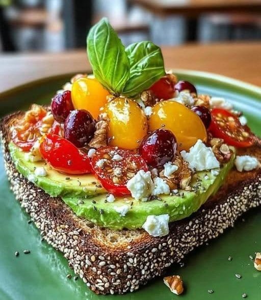 This vibrant and satisfying twist on the classic avocado toast brings together creamy avocado, tangy feta, juicy cherry tomatoes, sweet dried cranberries, and crunchy walnuts. It’s a flavor-packed combination that’s perfect for breakfast, brunch, or a light snack. Each bite offers a balance of creaminess, freshness, sweetness, and crunch, making it a wholesome yet indulgent choice.