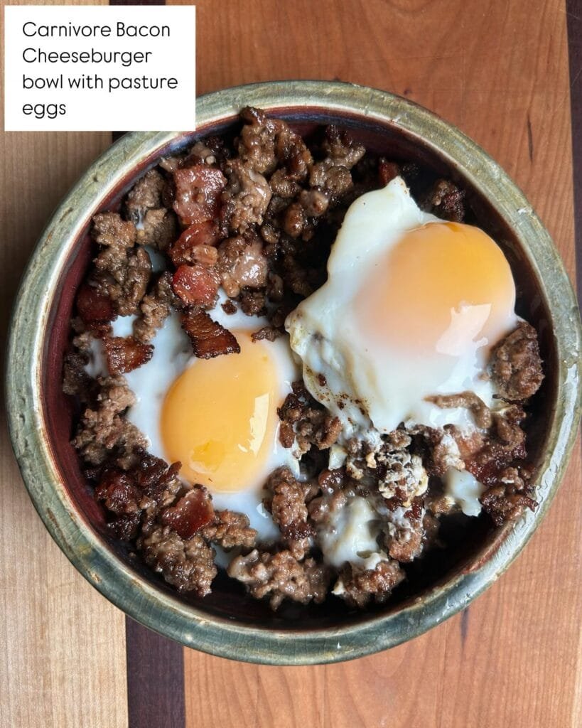 Bacon Cheeseburger Bowl with Pasture Eggs