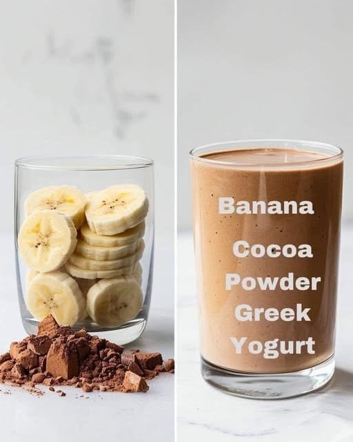 Peel the ripe banana and slice it into chunks to make blending easier. Gather the remaining ingredients, including the cocoa powder, Greek yogurt, and milk. - Combine in Blender: