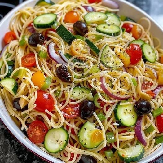 A fresh and vibrant pasta salad packed with veggies and tossed in a zesty Italian dressing. Perfect for potlucks, BBQs, or a light summer meal!