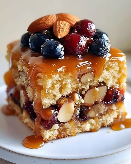 6.Sprinkle with sliced almonds, blueberries, and cranberries.