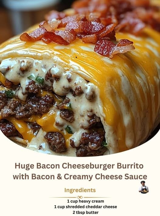 Carnivore Bacon Cheeseburger Burrito with Bacon & Creamy Cheese Sauce