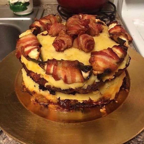 Enjoy the savory celebration with this meat lover’s dream cake!