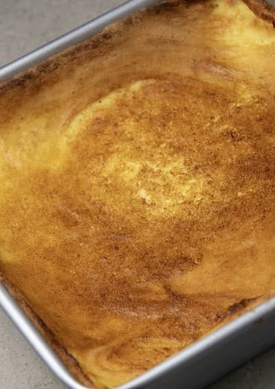 Bake: Pour the mixture into the prepared pan, spreading it out evenly. Bake for 30-35 minutes, or until the cake is firm, cooked through, and browned on top.