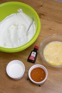 Add the egg yolks one at a time, making sure to fully incorporate each before adding the next. This process will make the filling light and fluffy. Then, add the heavy cream, vanilla extract (if using), sweetener, and a pinch of salt. Mix until everything is smooth and well combined.