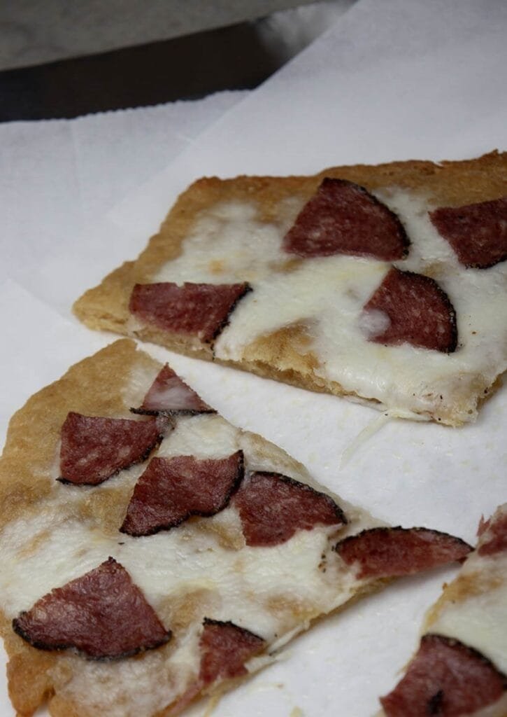 - Once the crust is done, you can add carnivore-friendly toppings like cooked bacon, pepperoni, sausage, or more cheese (if allowed on your diet). Simply top with your choice of meat and cheese, then return the pizza to the oven to melt the cheese for an additional 5-7 minutes.