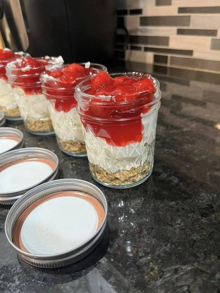- Refrigerate the jars for at least 4-6 hours or overnight to allow the cheesecake to firm up and chill.