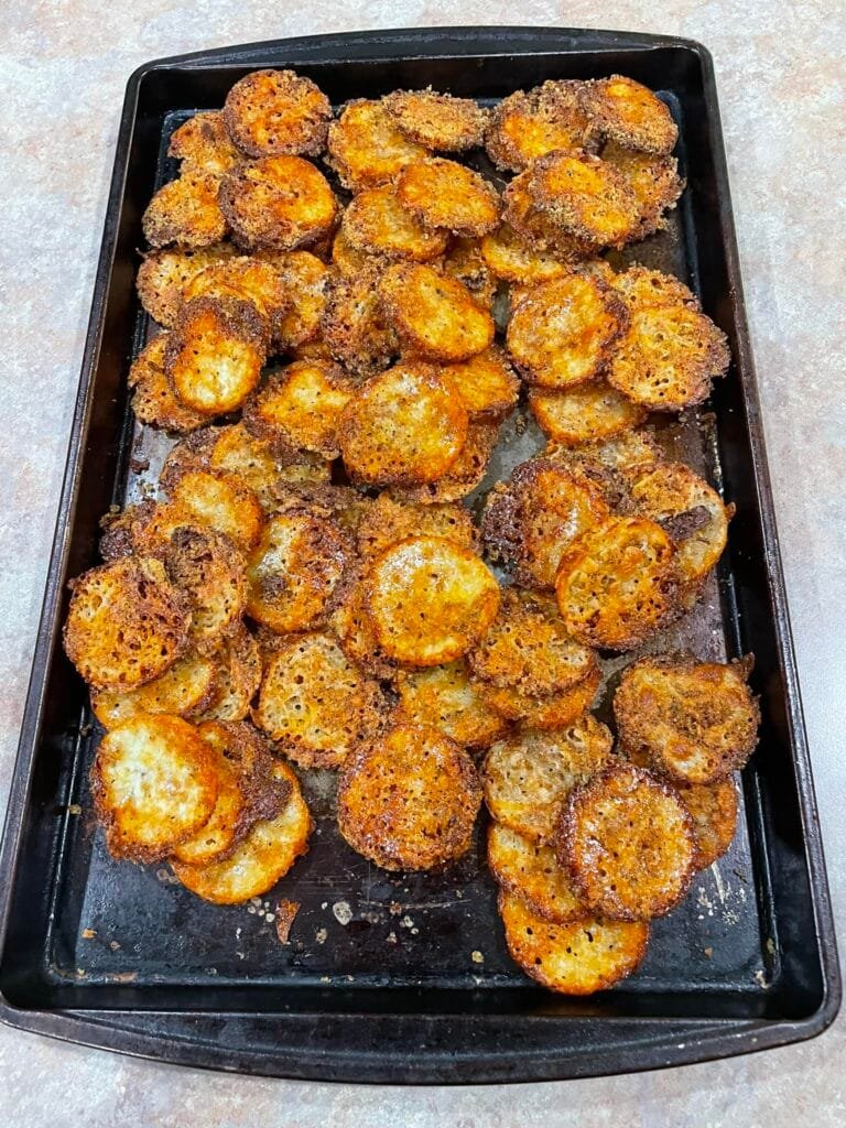 - On a serving plate, arrange the homemade carnivore chips as the base.