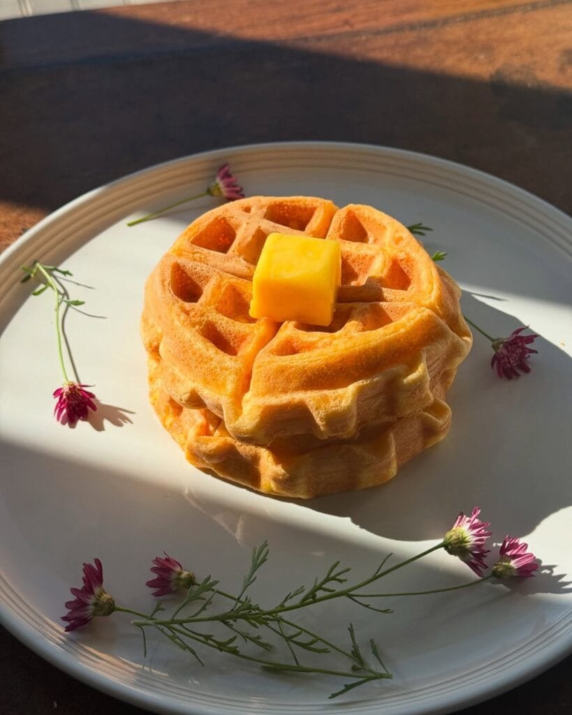 - Once the waffles are done, carefully remove them from the waffle iron and serve hot.