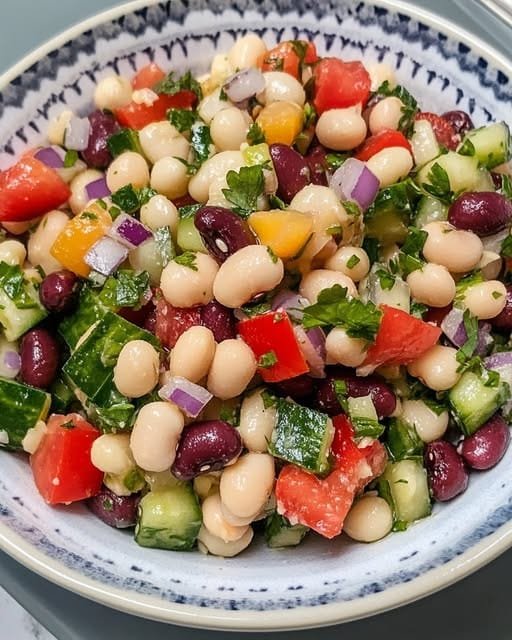 🥗 Mediterranean Dense Bean Salad 📝 Description: This Mediterranean Dense Bean Salad is a hearty, colorful blend of protein-rich beans,