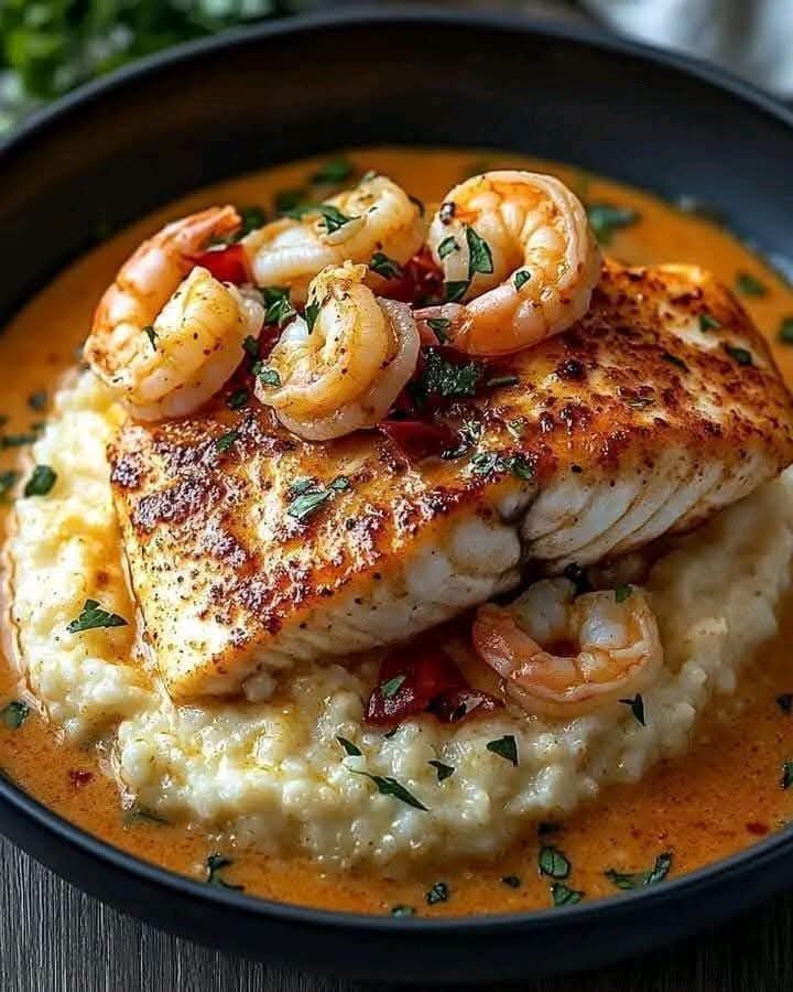 Red Snapper, Shrimp & Grits with Cajun Cream Sauce 🐟🍤 Description This Southern-inspired dish combines tender red snapper, succulent shrimp,