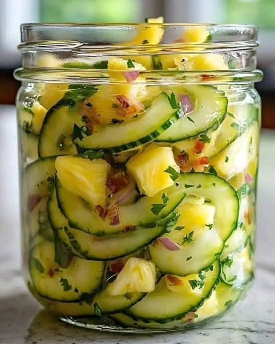 Pineapple Cucumber Salad This Pineapple Cucumber Salad is a refreshing, vibrant, and hydrating dish that combines sweet, juicy pineapple with