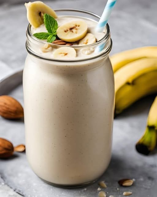 Oat and Banana Smoothie 🍌 with Almond Milk This Oat and Banana Smoothie is a nourishing, creamy, and satisfying option