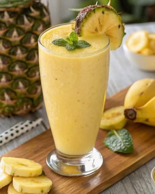 Tropical Pineapple and Banana Smoothie – A Refreshing Drink for Any Day! 🌞🥤 Looking for the perfect tropical drink to