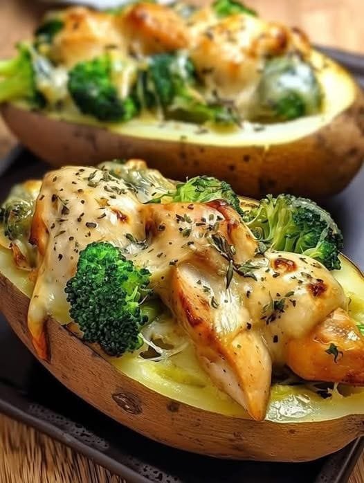 🥔 Chicken Broccoli Stuffed Baked Potato 🥦