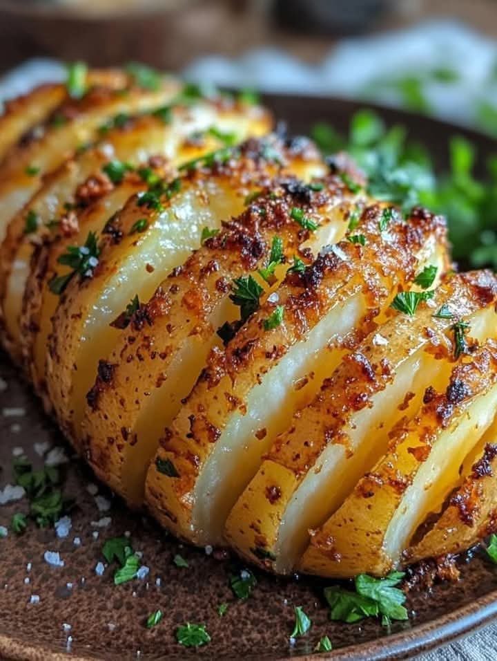 Crispy Hasselback Potato with Garlic Butter and Fresh Herbs