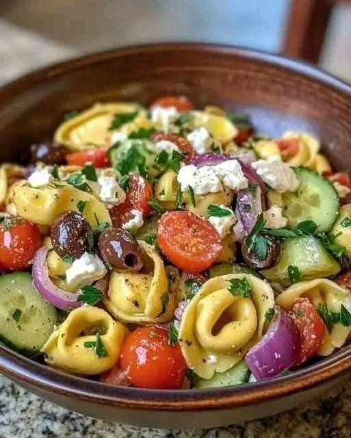 A delicious fusion of Greek and Italian flavors, this tortellini pasta salad is perfect for a light lunch, potluck, or side dish.