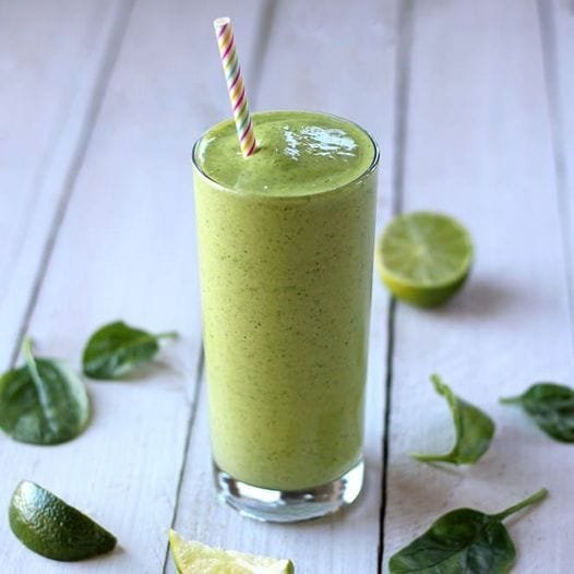 1. Place banana, spinach, frozen pineapple, frozen mango, yogurt, milk, and lime juice into a blender. Process until all ingredients are well blended and you have a smooth texture.