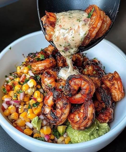 This Grilled Shrimp Bowl is a fresh, flavorful, and satisfying dish that combines smoky grilled shrimp with creamy avocado, tangy corn salsa, and a rich creamy sauce. It’s a perfect option for a healthy, quick meal that is both filling and packed with vibrant flavors. Whether served for lunch, dinner, or meal prep, this bowl is bound to become a go-to favorite!