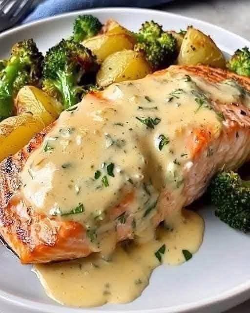 This delicious and creamy lemon butter salmon is paired with crispy roasted baby potatoes and tender broccoli for a nutritious and satisfying meal. The rich, buttery sauce infused with garlic and lemon enhances the perfectly seared salmon, making it a restaurant-quality dish you can easily prepare at home.