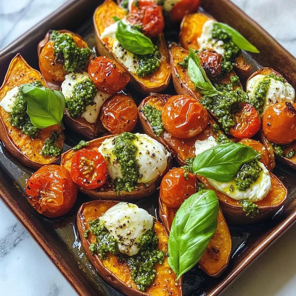 These Loaded Sweet Potato Bites are a delicious and wholesome appetizer or snack that combines roasted sweet potatoes, creamy burrata, juicy cherry tomatoes, and fragrant pesto. This dish is perfect for any occasion, whether you’re hosting a party, looking for a healthy side dish, or simply craving something flavorful and satisfying.