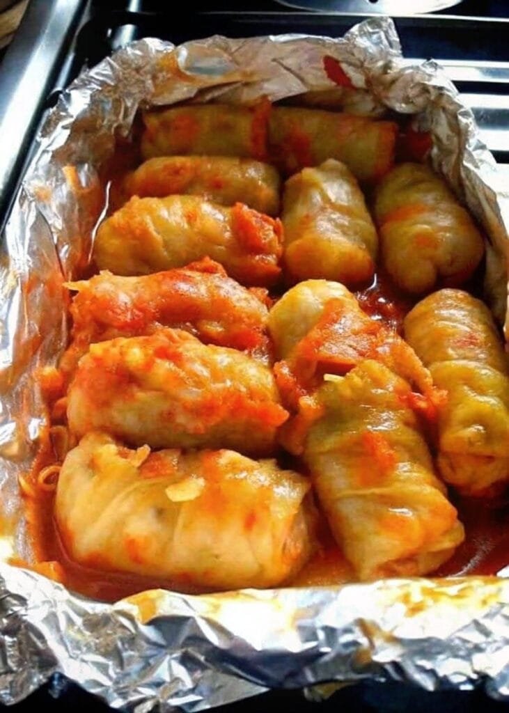 - Once done, be careful removing foil covering as there will be steam. Discard top cabbage leaves. Allow to cool for 20 minutes or so before digging in. Garnish, if desired.