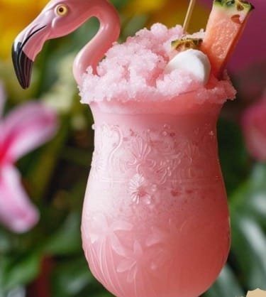 Enjoy your Perfect Pink Flamingo Piña Colada, a delightful twist on the classic tropical cocktail!