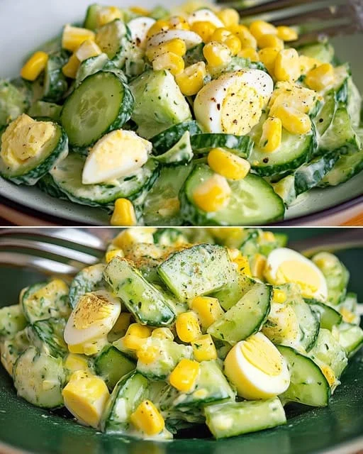 This Refreshing Cucumber and Egg Salad with Sweet Corn is quick, easy, and full of fresh flavors—a perfect light and healthy dish! Let me know if you’d like more variations. 😊🥒🥚🌽