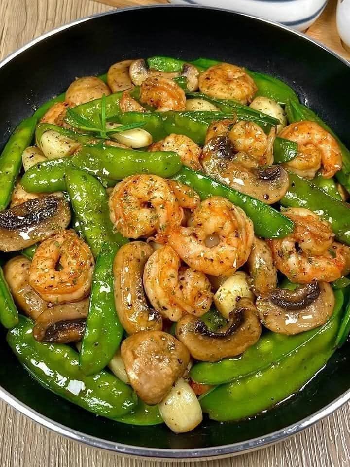 This stir-fry is a crisp, savory, and protein-packed meal combining tender shrimp, crunchy snow peas, and earthy mushrooms in a garlicky, umami-rich sauce. It’s fast, fresh, and perfect served over rice or noodles for a balanced meal.