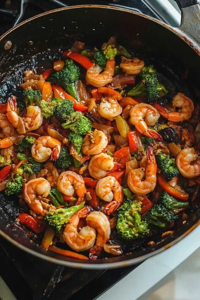 - Combine everything: Return the shrimp to the pan, pour in the sauce, and toss everything together for 2-3 minutes until well-coated and heated through.