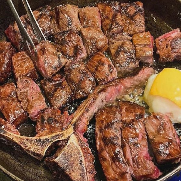 - Plate the sizzling steak bites hot and serve with a dollop of melted butter or a creamy egg yolk on the side for dipping.