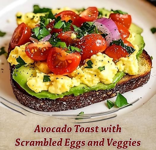 A wholesome and flavor-packed toast stacked with creamy avocado, soft scrambled eggs, fresh veggies, and a punch of sweet balsamic glaze — all layered on crusty sourdough bread. Perfect for a protein-rich, heart-healthy breakfast or lunch!