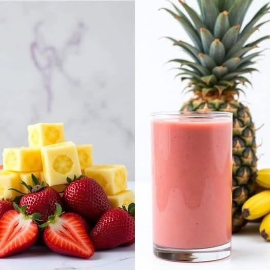 A refreshing, vibrant smoothie packed with tropical flavors! The combination of sweet strawberries, tangy pineapple, and creamy banana, along with hydrating coconut water or almond milk, makes this smoothie a perfect choice for a healthy breakfast, post-workout snack, or anytime you need a refreshing boost. The natural sugars from the fruit provide an energizing pick-me-up, while the coconut water or almond milk offers smoothness and hydration.