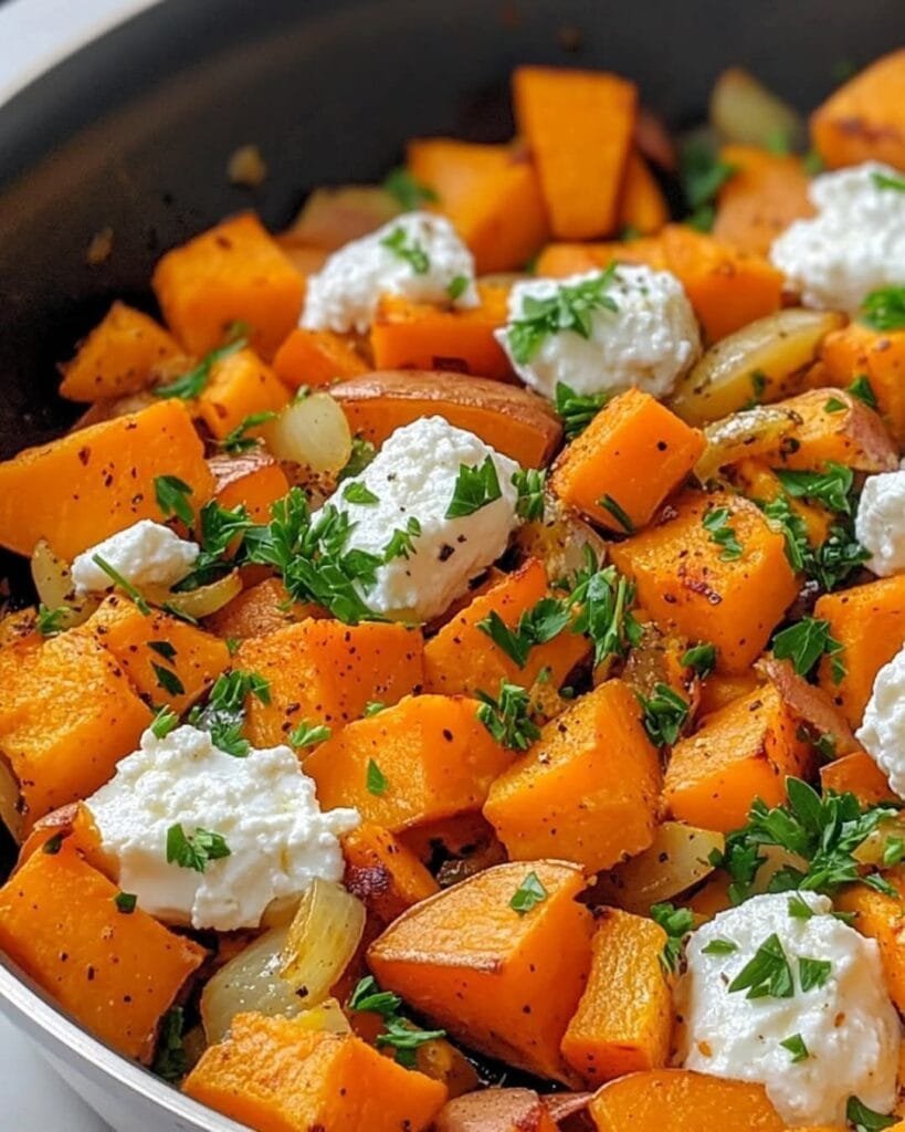 This hash is my go-to for a quick, satisfying meal—sweet, smoky, and creamy with a protein boost from cottage cheese.