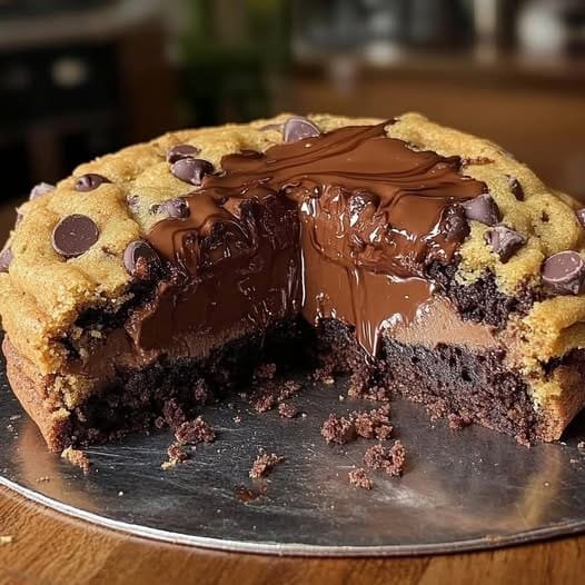 This indulgent dessert combines layers of rich chocolate brownie cake, gooey chocolate hazelnut filling, and a delicious cookie dough center. It’s the ultimate sweet treat for any chocolate lover!